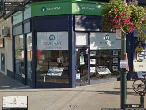 The estate agent where Ruth enquires about the clock tower is in Percy Road, Twickenham, and naturally still an estate agent: