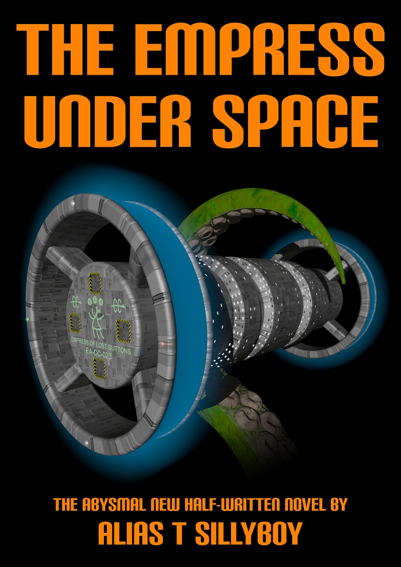 This one (below) was for The Empress Under Space, obviously. I gave up on the actual writing after a few days, so I probably spent more time on the cover than the contents. This was also rendered in POV-Ray.